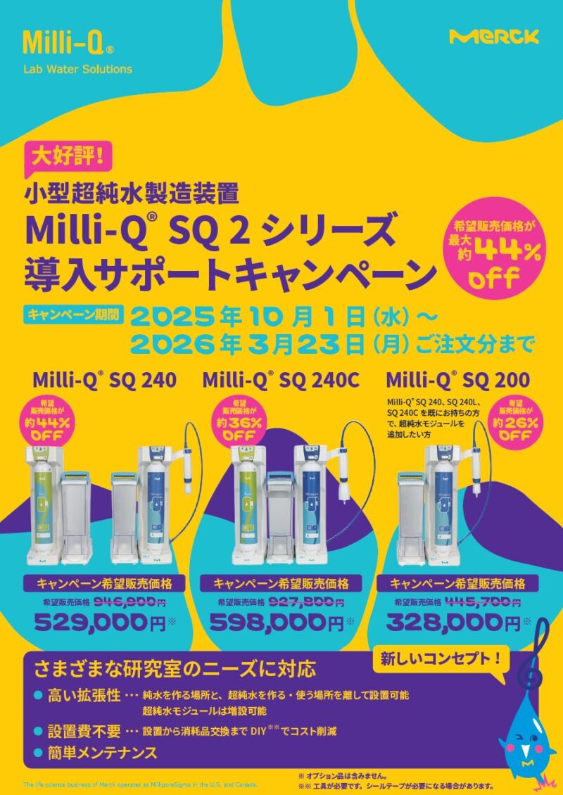 メルク 小型超純水製造装置 導入サポートキャンペーン開催開催期間:2025年10月1日~2026年3月23日まで