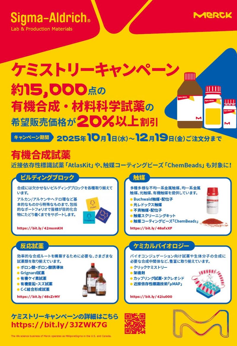 メルク(Sigma Ardrich)ケミストリーキャンペーン開催 開催期間:2025年10月1日~2025年12月19日まで