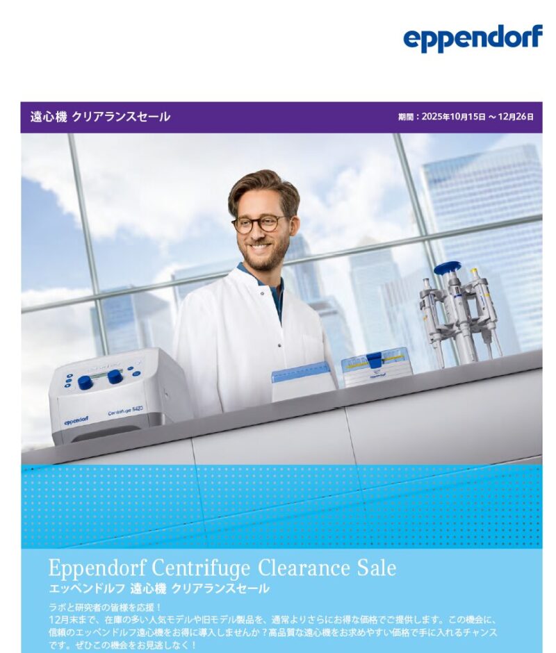 エッペンドルフ 遠心機クリアランスセール開催 ~2025年12月26日まで