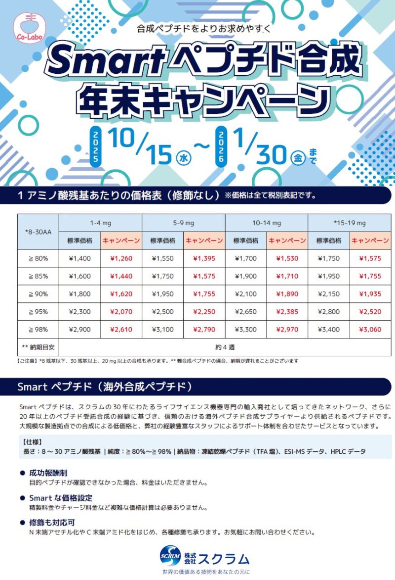 スクラム Smartペプチド合成年末キャンペーン開催 開催期間:2025年10月15日~2026年1月30日まで