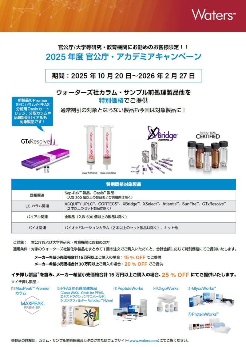 日本ウォーターズ 官公庁・アカデミアキャンペーン開催 開催期間:2025年10月20日~2026年2月27日まで