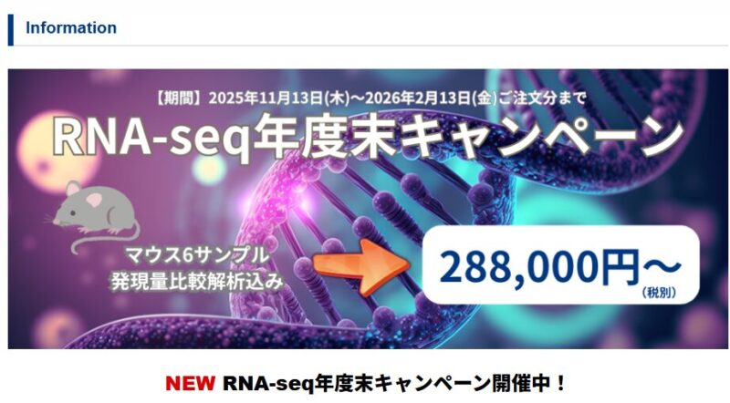 ユーロフィンジェノミクス RNA-Seq年度末キャンペーン開催 ~2026年2月13日まで