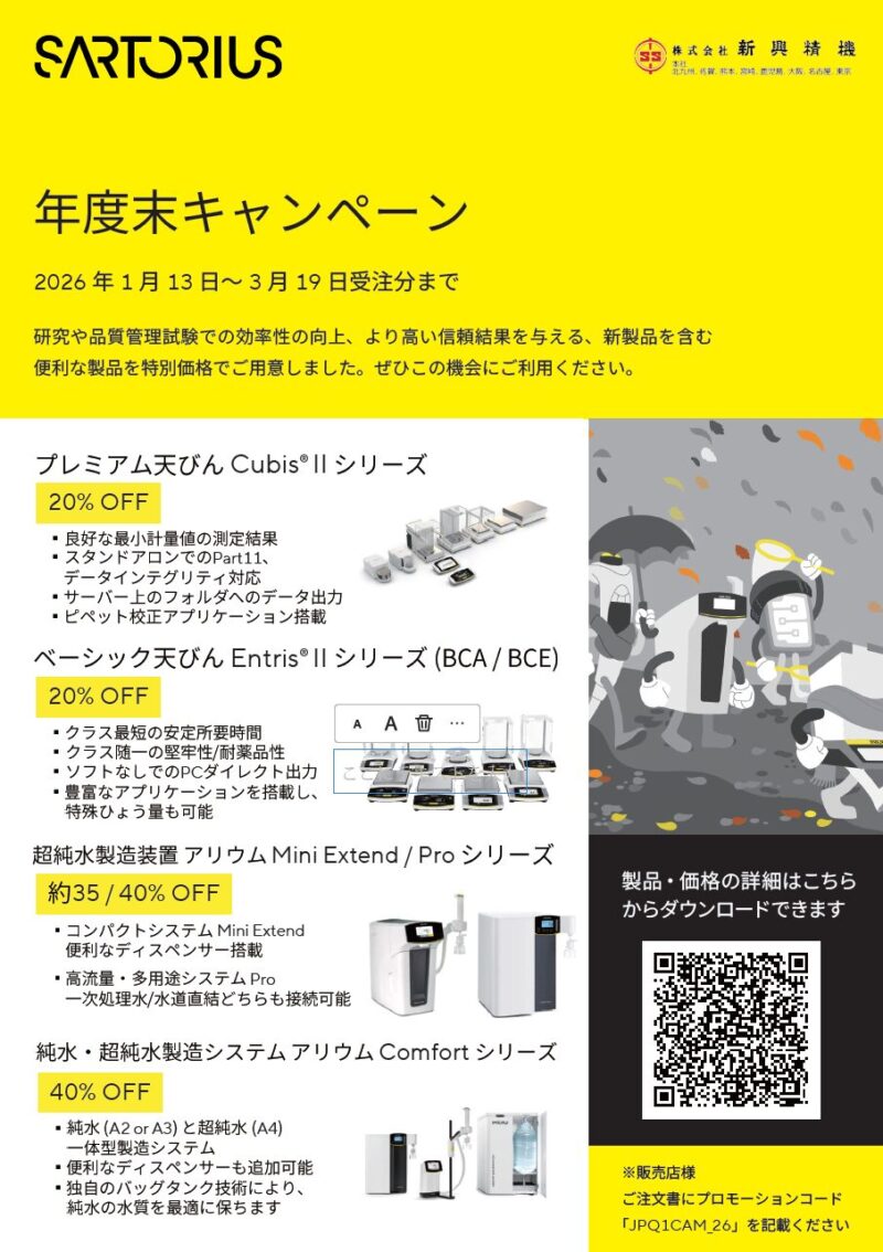 ザルトリウス年度末キャンペーン開催開催期間:2026年1月13日~2026年3月19日受注分まで