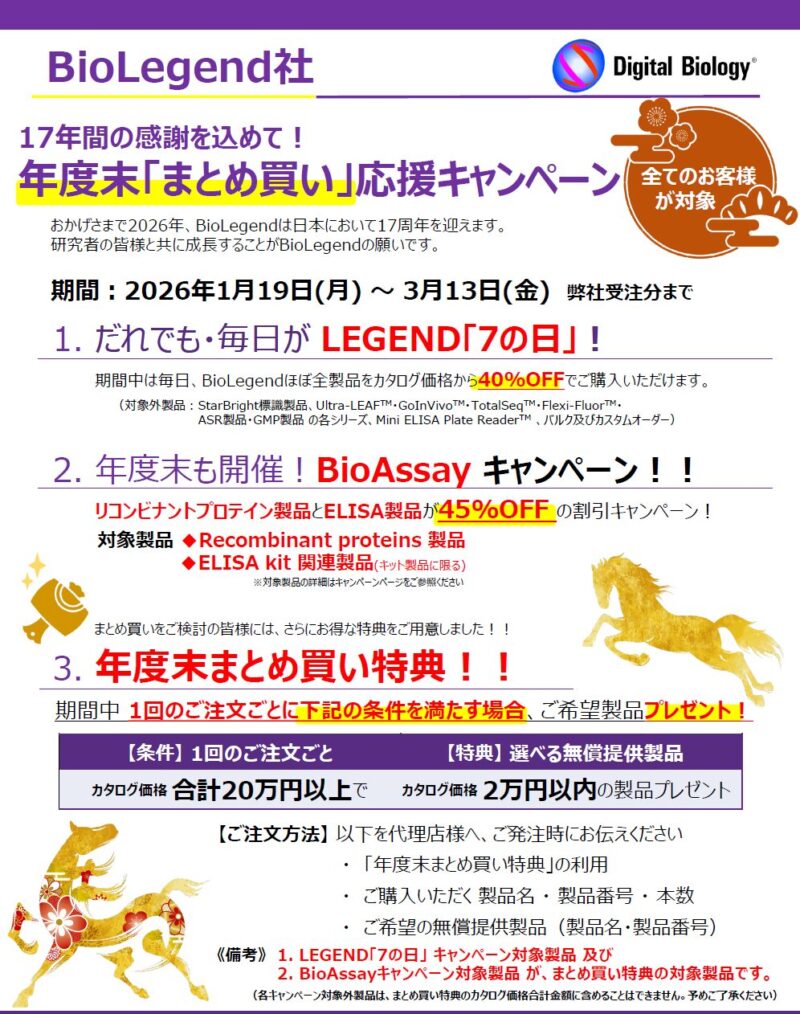 BioLegend 17年間の感謝を込めて 年度末まとめ買い応援キャンペーン開催  ~2026年3月13日まで