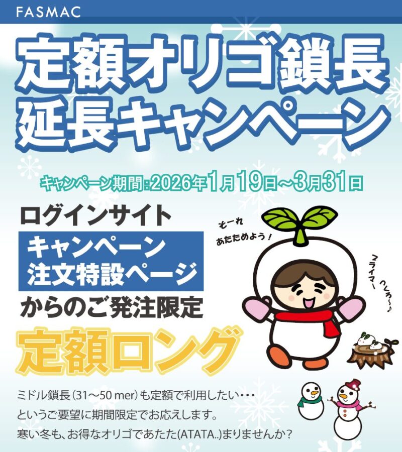 ミドル鎖長(31~50mer)も定額で利用できるキャンペーンを開催します。