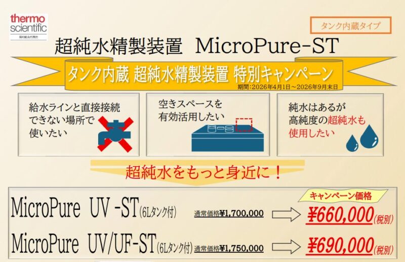 サーモフィッシャー超純水精製装置キャンペーン開催 ~2026年9月30日
