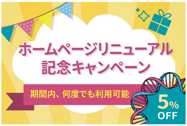 ホームページリニューアルを記念しまして、期間中、何度でも5%OFFでご利用できます。5%OFF キャンペーンコード:VBNEW2026