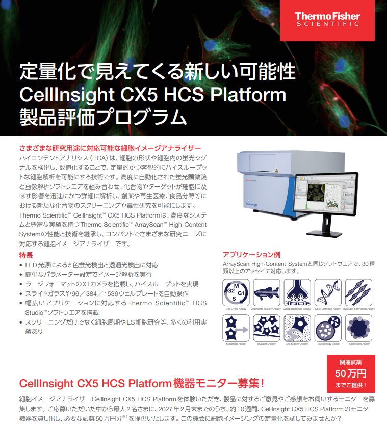 サーモフィッシャーサイエンティフィック CellInsight HCS Platform製品評価プログラム